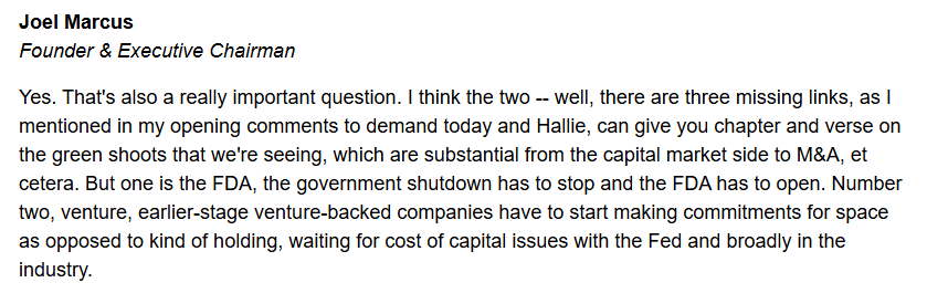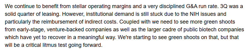 Pe scurt, dupa boom-ul spectaculos din 2021, finantarea VC pentru biotehnologie a scazut semnificativ, o consecinta directa a cresterii dobanzilor si a aversiunii sporite la risc. Contractia asta a capitalului de risc loveste direct in companiile aflate la inceput de drum, care sunt, de fapt, motorul principal al cererii noi de spatii de laborator. Deci practic, companiile de genul ARE au construit foarte mult in ultima perioada iar acele spatii sunt acum foarte greu de inchiriat, pe cand chiriasii mai vechi, in special cei de mai sus, raman in continuare o baza solida.