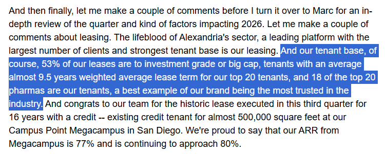ARE va ramane din punctul meu de vedere un lider de necontestat in nisa „life science real estate”, datorita: