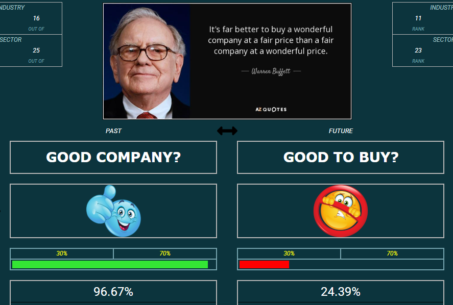 Good Company? – scor bazat pe criterii bazate pe indicatori istorici, care îți spune dacă business-ul este unul solid și de calitate (considerăm că trecutul ne arată calitatea unui business).